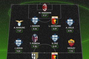 whoscored本輪意甲最佳陣: