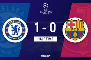 上半場傷停補時2分鐘,半場結(jié)束,切爾西暫1-0巴塞羅那。