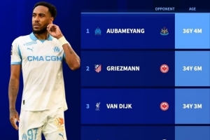 德轉(zhuǎn)統(tǒng)計表明,奧巴梅揚成為本賽季歐冠年紀最大的進球球員,今天他的具體年齡為36歲4個月。