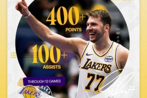 體育資訊11月26日訊 湖人當(dāng)家球星盧卡·東契奇本賽季出戰(zhàn)12場(chǎng)已達(dá)成400分100助,成為NBA歷史首人。