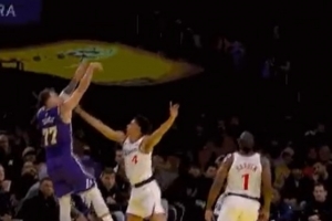 GIF-東契奇三分給了犯規(guī) 快船挑戰(zhàn)成功