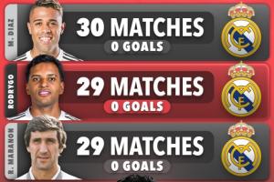 體育資訊11月26日訊 皇馬前鋒羅德里戈本賽季狀態(tài)低迷,出戰(zhàn)14場(chǎng)比賽1球未進(jìn)。目前羅德里戈俱樂部連續(xù)進(jìn)球荒已經(jīng)長達(dá)29場(chǎng),排名皇馬隊(duì)史第2,僅次于30場(chǎng)球荒的馬里亞諾。羅德里戈上次代表皇馬取得進(jìn)球,還是今年3月對(duì)陣馬競的比賽。