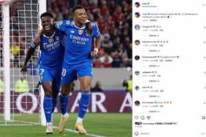 本場(chǎng)比賽姆巴佩上演大四喜,維尼修斯也送出兩次助攻。賽后維尼修斯社媒曬出與姆巴佩慶祝合影,配文寫(xiě)道:“一場(chǎng)大勝,姆巴佩獨(dú)中四元,取得歐冠第27次助攻,未來(lái)還有更多!”