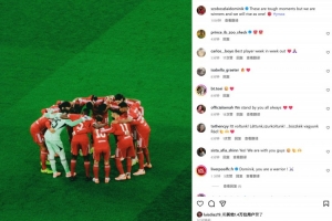 本場比賽索博斯洛伊可謂球隊為數不多的亮點,曾一度扳平比分。索博斯洛伊也在社媒曬出球隊首發(fā)合照,配文鼓勵球隊:“現在是艱難的時刻,但我們是冠軍之師,我們將會團結一致站起來!”