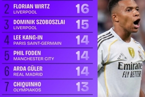 體育資訊11月27日訊 本賽季歐冠5輪戰(zhàn)罷,數據網站Squawka盤點了本賽季歐冠創(chuàng)造機會榜,具體如下: