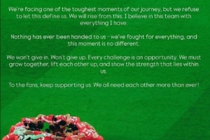 對于球迷們,請繼續(xù)支持我們。我們比任何時(shí)候都更需要彼此的力量!