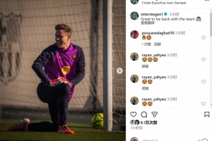 長期因傷缺席的巴薩門將特爾施特根已經(jīng)回歸訓(xùn)練場,朝著復(fù)出邁出堅實一步,他在社交媒體上曬出訓(xùn)練照片,配文:“很高興回歸球隊。”