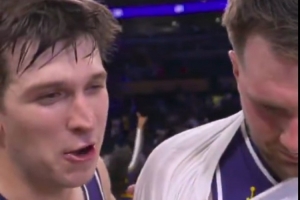 賽后東契奇接受采訪時(shí)里夫斯搶鏡:“我現(xiàn)在扣籃次數(shù)比他多。”