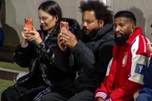 16歲的恩佐·阿爾維斯在第79分鐘替補登場,鏡頭給到場邊的父親馬塞洛,后者正在用手機拍下兒子首秀的瞬間。