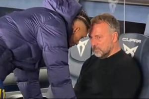 盡管主場取勝,但巴薩主帥弗里克對球隊本場比賽的表現(xiàn)似乎并不完全滿意。終場哨響后,DAZN的轉播鏡頭拍到弗里克一臉嚴肅地留坐在替補席上,與本場表現(xiàn)出色,被換下的拉菲尼亞交換著意見。交流過程中,弗里克神情嚴肅,幾次搖頭。