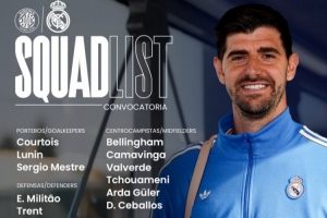 體育資訊11月30日訊 北京時(shí)間12月1日凌晨4:00,2025-26賽季西甲聯(lián)賽第14輪,皇馬將客戰(zhàn)赫羅納。賽前,皇馬官方公布球隊(duì)大名單,庫(kù)爾圖瓦、呂迪格和馬斯坦托諾回歸,勞爾·阿森西奧、赫伊森、卡瓦哈爾和阿拉巴缺席。