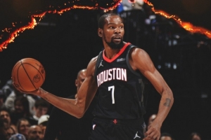 賽后火箭官方發(fā)布贏球海報,本場迎來復出的杜蘭特登上封面!