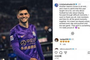體育資訊12月1日訊 2025中超聯(lián)賽已落下帷幕,最終天津津門虎排在聯(lián)賽第6位。津門虎外援薩爾瓦多在社媒發(fā)文,對賽季進行總結(jié)。