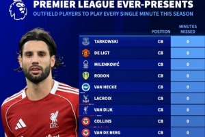 體育資訊12月1日訊 英超已經(jīng)戰(zhàn)罷13輪,《轉(zhuǎn)會(huì)市場(chǎng)》統(tǒng)計(jì)了本賽季至今一分鐘都未缺席的全勤非門將球員,共計(jì)16人: