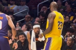 GIF-詹姆斯在場(chǎng)上和場(chǎng)邊的古德溫聊天
