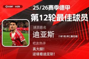 第12輪評選結(jié)果結(jié)出爐,迪亞斯傳射建功,幫助拜仁補(bǔ)時(shí)逆轉(zhuǎn)圣保利,獲得吧友超3.6萬票支持,當(dāng)選【體育資訊X小紅書德甲第12輪最佳球員】!