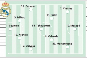 體育資訊9月20日訊 《阿斯報(bào)》發(fā)文,預(yù)測(cè)了皇馬的首發(fā)陣容。
