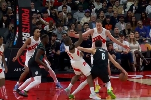 GIF-阿夫迪亞行進(jìn)間推翻謝德被吹進(jìn)攻犯規(guī),開拓者挑戰(zhàn)失敗