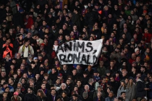 本場(chǎng)比賽,在諾坎普球場(chǎng)內(nèi)出現(xiàn)了一條球迷專(zhuān)門(mén)為羅納德·阿勞霍展示的橫幅。該橫幅上寫(xiě)著“請(qǐng)振作起來(lái),羅納德”。
