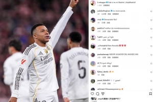 本場(chǎng)比賽姆巴佩2射1傳,賽后他也在社媒曬出本場(chǎng)慶祝進(jìn)球的照片,配文寫道:“這就是我的皇馬。加油,馬德里!”