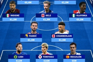 中場(chǎng):皮亞尼奇(150萬(wàn)歐)、張伯倫(150萬(wàn)歐)、因西涅(150萬(wàn)歐)、阿里(150萬(wàn)歐)、奧拉因卡(350萬(wàn)歐)