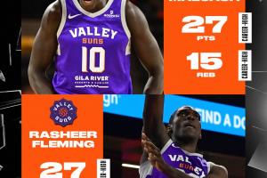 本場比賽太陽兩名新秀均發(fā)揮出色,10號秀馬盧阿奇14投10中,三分1中0,罰球5中5,砍下27分15籃板1助攻4蓋帽;次輪狀元弗萊明18投11中,三分9中4,罰球2中1,砍下27分13籃板2助攻3搶斷;另外達(dá)米恩·鮑18投9中,三分7中3,罰球4中4,砍下26分5籃板8助攻4搶斷1蓋帽。