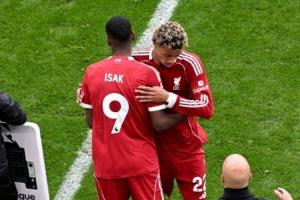 體育資訊09月20日訊 利物浦2-1埃弗頓賽后,打入一球的?;倏苏劦搅诉M(jìn)球和隊友伊薩克。