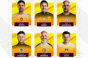 體育資訊12月4日訊 英超官方公布11月最佳主帥候選,阿爾特塔、瓜迪奧拉、馬雷斯卡等6名教練入圍。