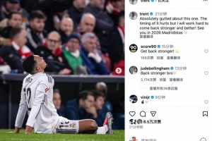 阿諾德社媒寫道:“對這次受傷真的感到非常沮喪。這個時機太難熬了,但我會努力訓(xùn)練,變得更強、更好!2026年再見,皇馬球迷們 ??”