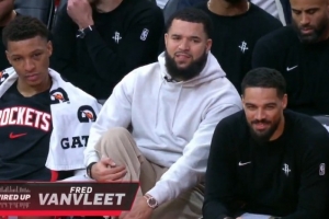 在比賽中,狄龍和在替補席上的范弗里特互動,后者說道:“40分,你有得過40分嗎?讓我見識一次,讓我們看看。”
