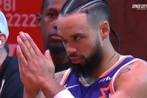 GIF-火箭為狄龍播放致敬視頻 后者向全場(chǎng)觀眾示意