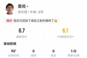 體育資訊9月21日訊 本輪英超曼聯(lián)2-1切爾西。此役恩佐首發(fā)打滿全場,球員全場重點數(shù)據(jù)如下↓