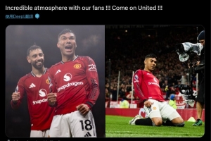 卡塞米羅曬出自己的賽場(chǎng)照,并配文:球迷們營(yíng)造的氛圍簡(jiǎn)直太棒了?。?!加油曼聯(lián)!?。?/p>