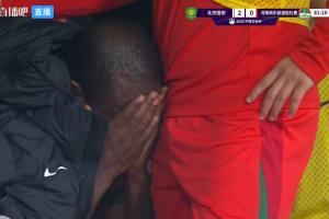 情緒崩潰!阿奇姆彭被換下后坐在替補席捂臉痛哭,隊友不停安慰。