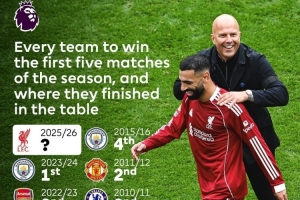 據英超官方統(tǒng)計,英超歷史上共有14支球隊賽季開局5連勝(包括本賽季利物浦),此前做到這點的13支球隊之中,4支球隊最終贏得當賽季英超冠軍,分別是切爾西(2次)、利物浦和曼城。