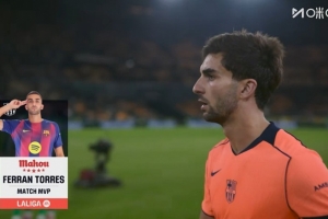 體育資訊12月7日訊 西甲第15輪比賽,巴薩在客場以5-3的比分戰(zhàn)勝貝蒂斯。本場比賽,費(fèi)蘭·托雷斯為紅藍(lán)軍團(tuán)上演帽子戲法,是球隊(duì)取勝的大功臣。賽后,費(fèi)蘭·托雷斯被西甲官方評為全場最佳球員。