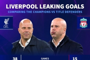 體育資訊12月7日訊 英超第15輪比賽,利物浦客場3-3戰(zhàn)平利茲聯(lián)。德國轉(zhuǎn)會市場統(tǒng)計了利物浦上賽季、本賽季的英超丟球數(shù)據(jù),并做出對比。