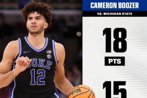 此役,2026年?duì)钤獰衢T、杜克大學(xué)前鋒卡梅隆·布澤爾繼續(xù)有著優(yōu)異表現(xiàn),本場(chǎng)比賽他登場(chǎng)34分鐘13投7中,三分3中1、罰球4中3,砍下18分15籃板5助攻2搶斷1蓋帽,得分全場(chǎng)最高,籃板全隊(duì)第一。