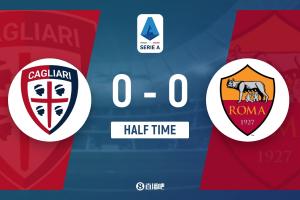 上半場(chǎng)補(bǔ)時(shí)1分鐘,卡利亞里0-0羅馬。
