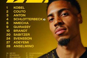 多特蒙德首發(fā):1-科貝爾、2-揚·庫托、3-安東、4-施洛特貝克、8-恩梅查、9-吉拉西、10-布蘭特、20-薩比策、24-斯文松、27-阿德耶米、28-安塞爾米諾