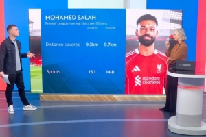 體育資訊12月8日訊 據(jù)天空體育統(tǒng)計,薩拉赫本賽季的每90分鐘跑動要多于上賽季。