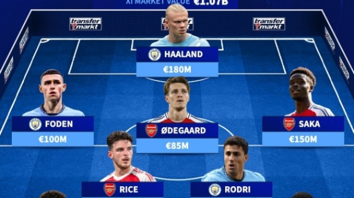11人中,5人來自曼城,6人來自槍手;5人身價超過1億歐。