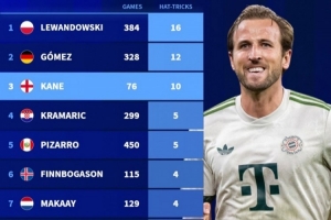 體育資訊12月9日訊 德國轉(zhuǎn)會(huì)市場盤點(diǎn)了21世紀(jì)德甲球員帽子戲法次數(shù)排名,凱恩10次已經(jīng)來到第三位。