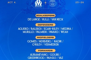 體育資訊9月21日訊 北京時(shí)間明天凌晨2點(diǎn)45分,馬賽將在法甲第5輪比賽中主場(chǎng)對(duì)陣巴黎,馬賽公布了此役的球員名單。