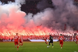 體育資訊12月10日訊 拜仁在本輪歐冠對陣葡體,南看臺死忠在比賽中燃放焰火。