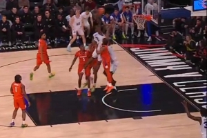 此役,明年的狀元大熱AJ·迪班薩投籃17中9,三分2中1,罰球10中9,爆砍28分9籃板6助攻,下半場22分。