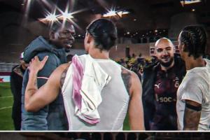 法甲官方曬出照片,摩納哥中場(chǎng)博格巴與加拉塔薩雷前鋒薩內(nèi)賽后寒暄。博格巴和薩內(nèi)曾分別效力曼聯(lián)和曼城,在曼徹斯特對(duì)決多年。后來他們分別去了尤文和拜仁,現(xiàn)在則是在法國(guó)和土耳其踢球。