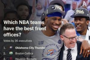 體育資訊12月10日訊 The Athletic邀請了聯(lián)盟中的36位高管對聯(lián)盟中各支球隊的管理層進行了排名,雷霆管理層連續(xù)兩年排名第一。