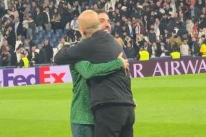 體育資訊12月11日訊 歐冠第6輪曼城客場(chǎng)2-1逆轉(zhuǎn)擊敗皇馬,賽后瓜迪奧拉被拍到與弟子謝爾基親切交流。