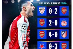 體育資訊12月11日訊 歐冠第6輪,阿森納客場(chǎng)3-0完勝布魯日,6戰(zhàn)全勝繼續(xù)領(lǐng)跑歐冠積分榜。
